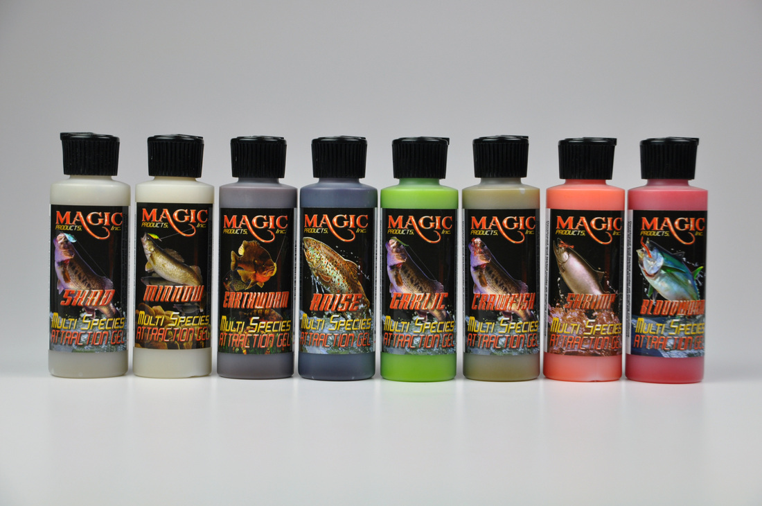 California Residents: Cancer or Reproductive Harm - www.P65Warnings.ca.gov.- Magic Products Attraction Gel Scents are available in Bass, Trout and Walleye in a variety of scents.